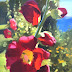 My red and orange nasturtiums have been prolific this summer and displaying them in my collection of glass vases, bottles and jars and painting them, gives me great joy!