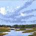 I was out there recently during a summer rainstorm. Suddenly the sun broke through the still black sky and lit up the marsh in a dazzling display of bright greens! Check out our paintings for this month’s challenge “Marshfield Hills”, at GJWP.